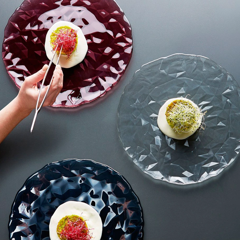 Het Bormioli Onderbord zorgt door zijn gebroken patroon voor een stijlvolle dinertafel. Het bord is uitermate geschikt voor zowel voorgerechten als nagerechten. Het transparante bord heeft een diameter van 33 cm en kan na gebruik gereinigd worden in de vaatwasmachine. Het servies van de Bormioli Diamond collectie is gemaakt van dun glas.