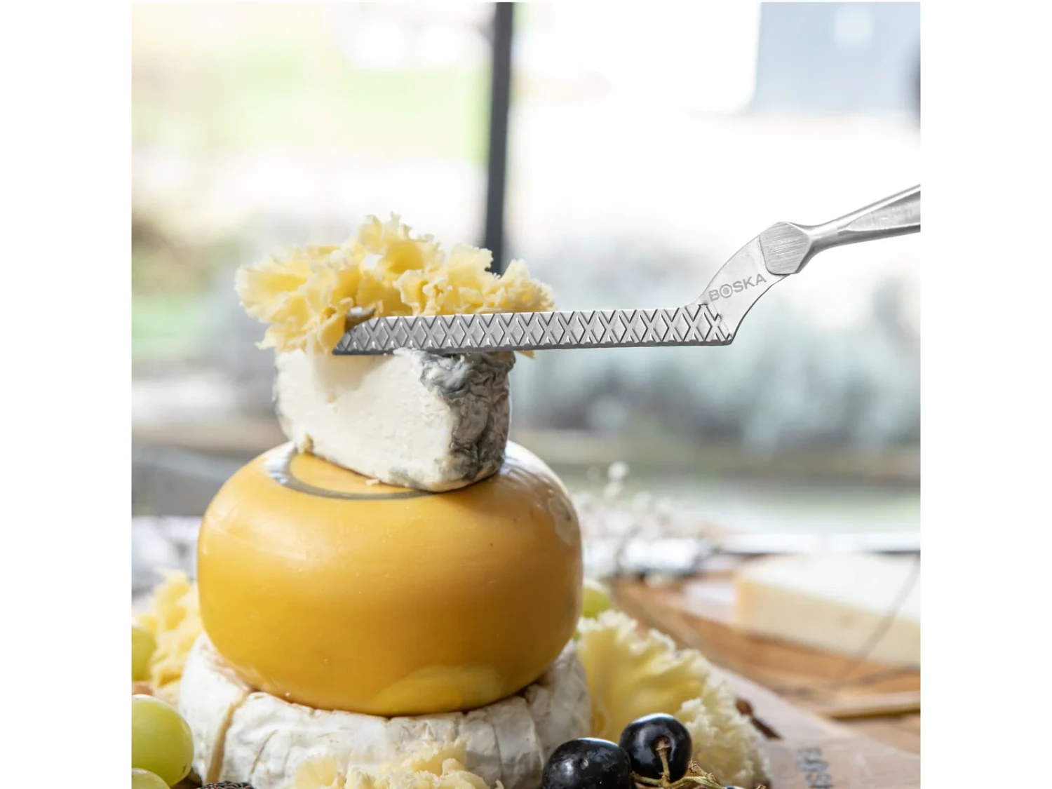 De Monaco+ collectie is echt het vlaggenschip van de Boska collecties. Boska heeft na 120 jaar ervaring alle eigenschappen die kaas snijden zo fijn maken in deze collectie verwerkt. Met het uitgebreide aanbod snijd je elke soort kaas met zijn eigen perfect geoptimaliseerde mes. Maar het blijft niet alleen bij kaasmessen. De collectie heeft ook meerdere keukenmessen om zo al het snijwerk in jouw keuken makkelijker te maken.ย Het kenmerkende wafelpatroon en de non-stickbehandeling zorgen voor minder weerstand tijdens het snijden of schaven. Benieuwd naar de gehele Monaco+ collectie? Klik dan hier.
