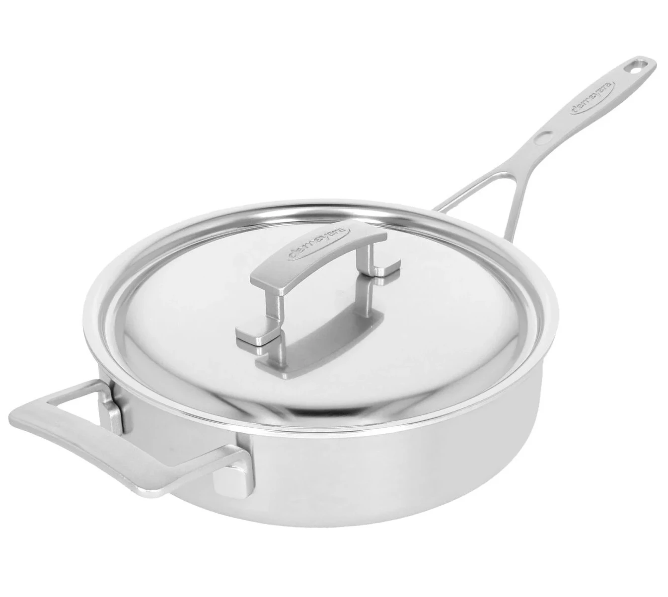In deze roestvrijstalen Industry 5 Hapjespan braad je je vlees, gevogelte, groenten en schaaldieren gelijkmatig aan. Na toevoeging van water, bouillon of wijn laat je ze verder garen onder deksel. Ideaal voor gevuld varkensgebraad, een aromatische bouillabaisse of een smaakvolle chili sin carne. Dankzij de grote oppervlakte (24 cm) is deze professionele Demeyere Hapjespan Industry 5 – ø 24 cm / 2.8 liter + deksel ook ideaal voor het snel inkoken van basissauzen of kreeftenbisque bijvoorbeeld.