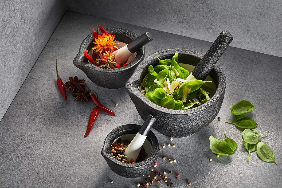 De Gefu Vijzel Grino ø 8 cm is de kleinste van zijn collectie. Hij is door zijn grootte ook uitermate geschikt om kleine mengsels of hoeveelheden peper te malen. Deze handgemaakte vijzel is voorzien van een ruwe binnenkant en stevige stamper. Deze zullen je niet in de steek laten tijdens het malen van zelfs de hardste kruiden. De vijzel is ook voorzien van schenktuit en antislip voet.