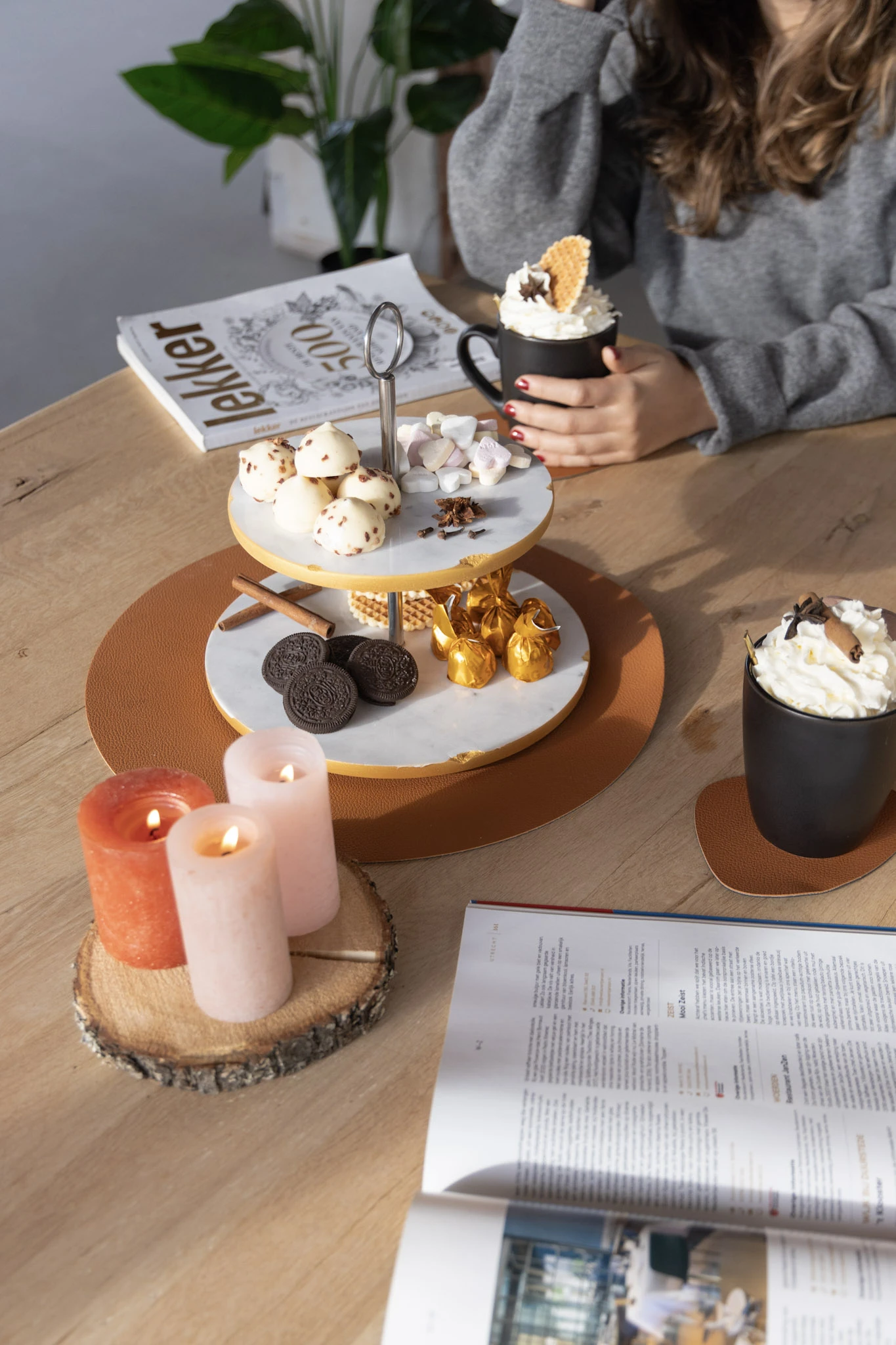 Binnenkort een high tea op de planning? Dan mag deze Jay Hill Etagere niet ontbreken op jouw tafel! De etagรจre is gemaakt van marmer en het onderste bord heeft een diameter van 25 cm en de bovenste van 20 cm. Ook is de etagรจre voorzien van anti-slip voetjes, zodat hij niet verschuift. Na het gebruiken van de [manudacturer] Etagere kan deze eenvoudig worden gereinigd met de hand.ย