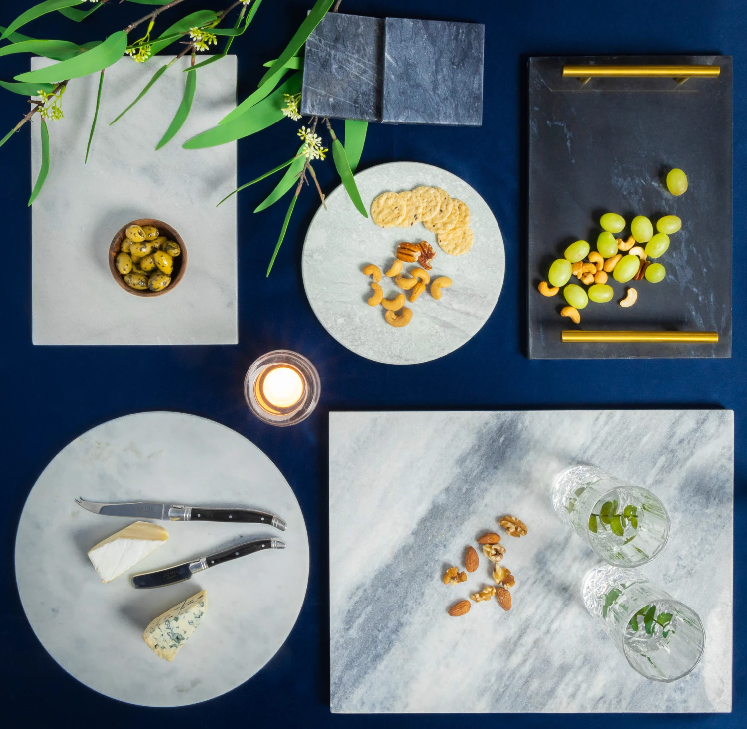 Met de Jay Hill Marble collectie breng je veel sfeer in huis. De collectie bestaat uit verschillende plateau’s, serveerstenen, dienbladen, onderzetters en keukenaccessiores. De producten zijn vervaardigd uit marmer en hebben daardoor allemaal een uniek patroon.