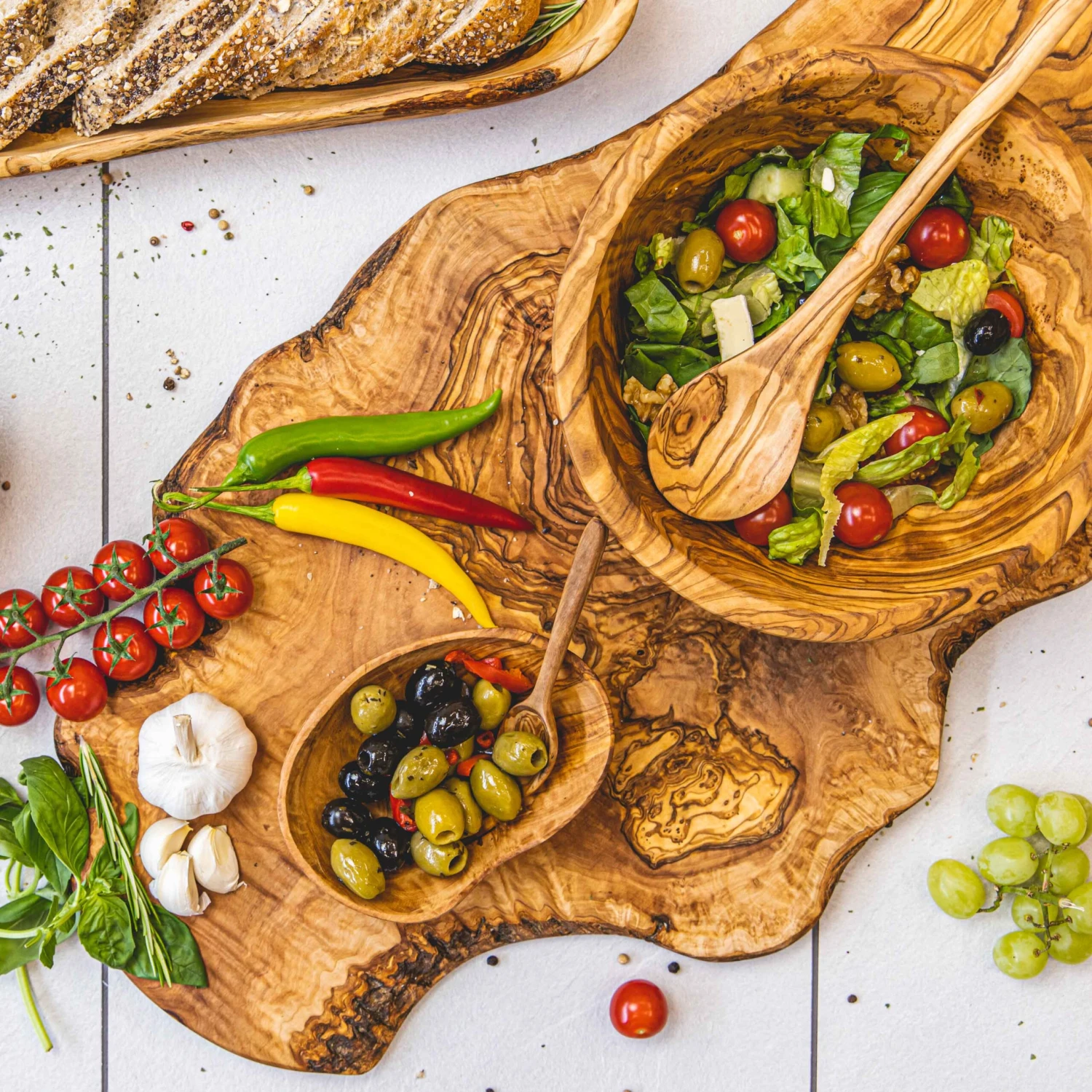 Olijfhout is รฉรฉn van de hardste houtsoorten ter wereld en is hygiรซnischer dan andere houtsoorten, doordat het van nature oliehoudend is. In de Tunea lijn zijn verschillende serveerplanken, spatels en andere keukenhulpjes verkrijgbaar.