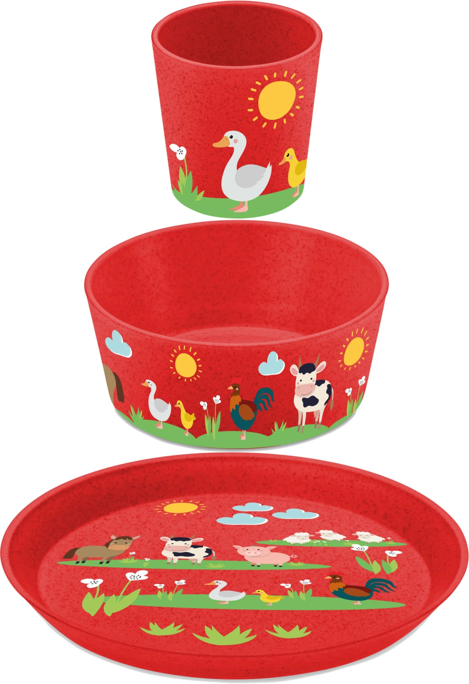 Het Koziol Kinderservies Connect Farm 3-Delig is origineel en compleet. Dit kinderservies is gemaakt van duurzaam kunststof en kan zowel binnen als buiten gebruikt worden. In de set zit een beker 190 ml, een kleine kom 400 ml en een ontbijtbord รธ 20,5 cm. De set kan veilig in de vaatwasser, want de print kan er niet afslijten.
