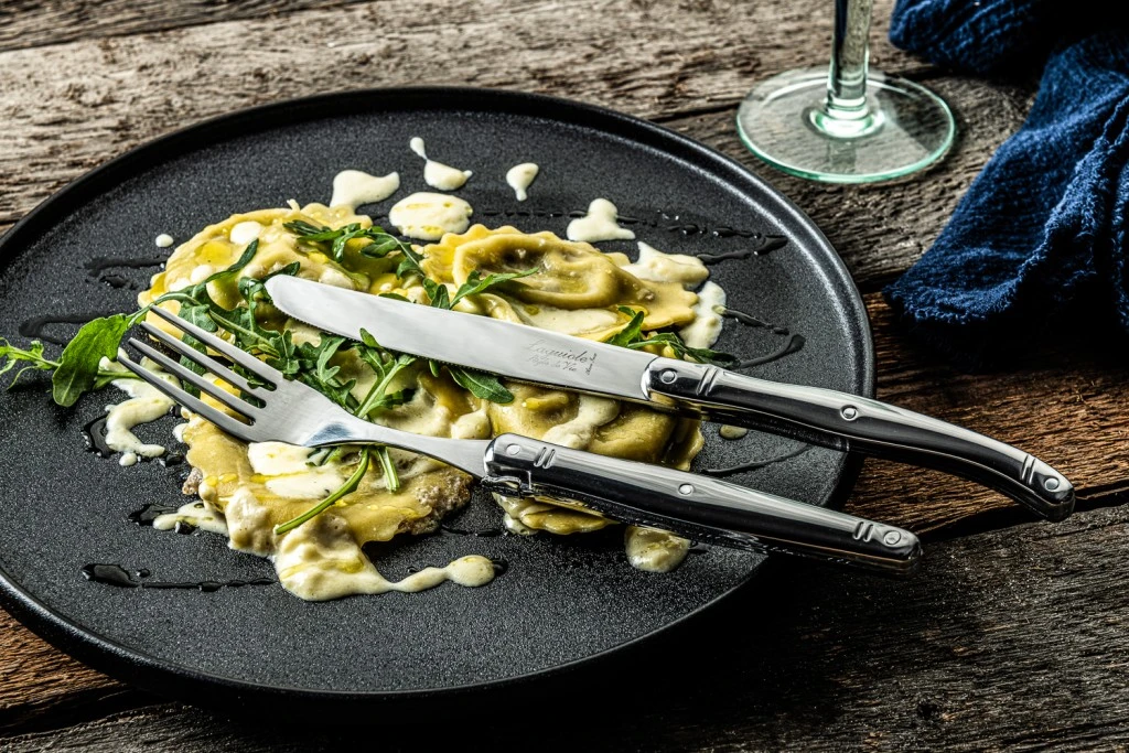 Het stijlvolle Laguiole bestekset is ontworpen en gefabriceerd in Frankrijk. Het bestek is prachtig vormgegeven en heeft door de elegante versieringen op het heft een klassieke uitstraling. Het bestek is gemaakt van hoogwaardig roestvrij staal en heeft een stevige handgreep die comfortabel in de hand ligt. De bestekset is geschikt voor zes personen en bestaat uit 24 delen. De Laguiole bestekset wordt geleverd in een houten bestekcassette.