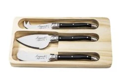 Met deze kaasmessenset van Laguiole Style de Vie presenteert u uw kaasplankje in stijl. De set bestaat uit drie kaasmessen voor verschillende kaassoorten. De kaasmessenset wordt geleverd in een houten tray en alle messen zijn voorzien van een glad lemmet van 1.2 mm. Daarnaast zijn de messen vaatwasserbestendig.