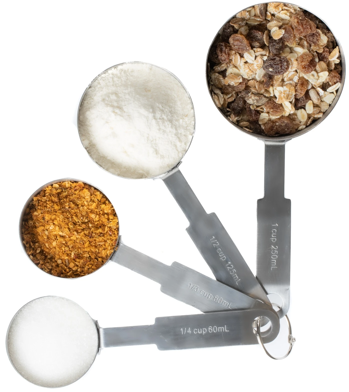 De Cookinglife Maatschepjes RVS set bestaat uit 4 verschillende maatschepjes. De inhoud van elk schepje is als volgt: