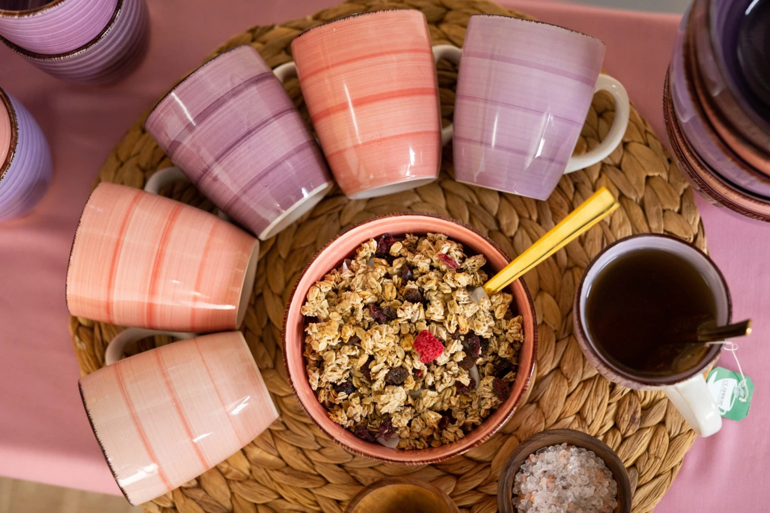 Als je graag rustig servies hebt, maar niet iets wat snel verveeld, dan is deze collectie van Cookinglife wellicht iets voor jou. Deze mokken komen in zes verschillende kleuren roze, die zorgvuldig zijn uitgezocht, waardoor het toch een geheel blijft. Let wel op: deze mokken worden gemixt geleverd, er kan dus geen kleur gekozen worden. Combineer de mokken met bijvoorbeeld de dinerborden, diepe borden of kleine kommen van de Mykonos collectie.