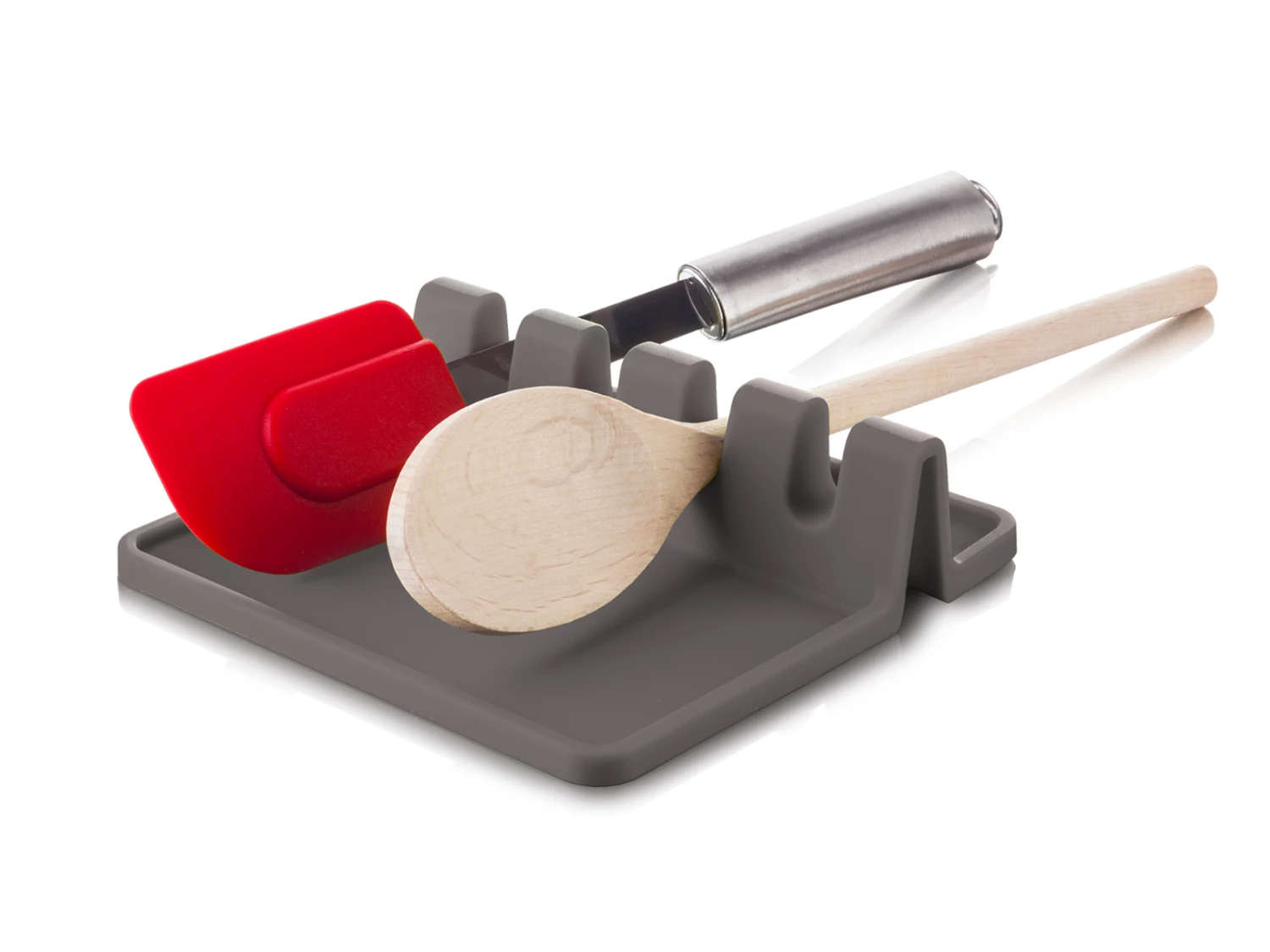 Op de Vacu VIn Lepelhouder kun je alle pollepels en ander keukengerei kwijt. De lepelhouder komt goed van pas tijdens het koken. Door de inhammen blijft het keukengerei stevig liggen. De lepelhouder vangt vooral de spetters op, die anders op het aanrecht waren gevallen. Ook is de lepelhouder geschikt voor in de vaatwasser en hittebestendig.