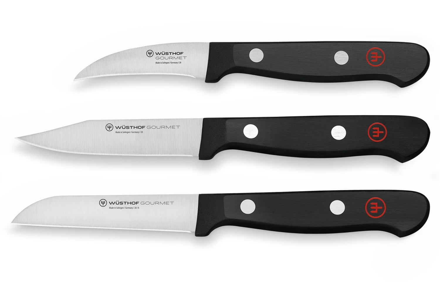 Met de Wusthof Schilmessenset Gourmet 3-Delig haal je 3 verschillende schilmesjes in huis die perfect zijn voor dagelijks gebruik! Dankzij de rechte rand heb je nauwkeurige controle bij zowel het decoreren als schillen, hakken en in blokjes snijden. De vorm van de mesjes zijn perfect voor het schillen, schoonmaken of vormgeven van fruit en groenten met een afgeronde oppervlakte. Na het gebruiken van de Wusthof Schilmessenset Gourmet 3-Delig kun je deze het beste reinigen met de hand.